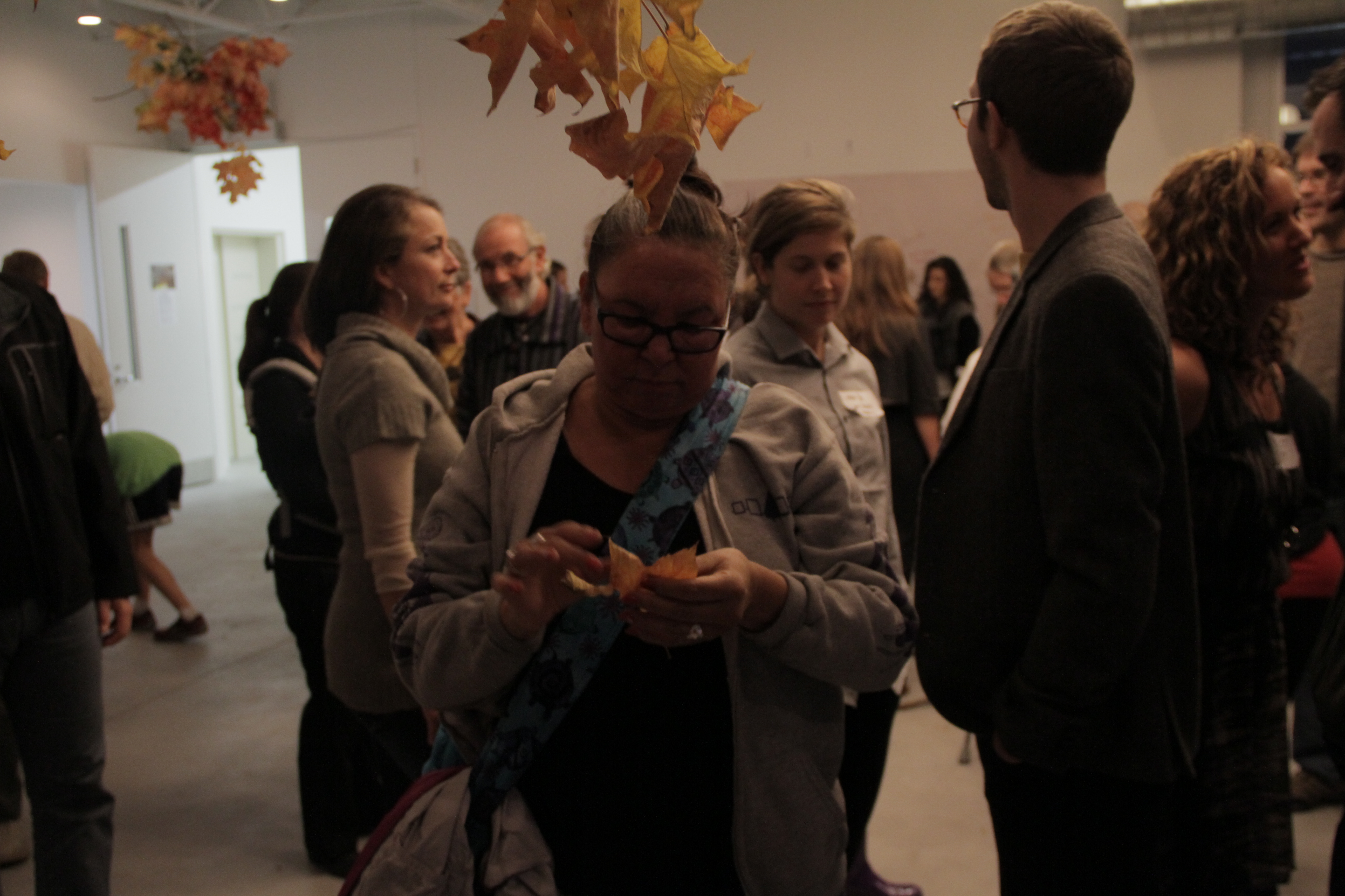 We wanted a storyteller for our performance, to weave a story related to the river and land the SoHo neighbourhood is situated within into the process. We were interested in finding an Indigenous elder and asked around at different places we had connections to, including the the N’Amerind friendship center based in our neighbourhood, the Native Studies department and the University of Western Ontario, and Fanshawe college. Up until ten days before the performance we still had not found a storyteller. Billy arrived from Montreal and told us we needed to first make sure we had a tobacco offering/gift to give to whomever the storyteller was that we would find. He also led us through an offering to the river. The next day we got a phone call from the Southwestern Ontario Aboriginal Health Center telling us that one of their traditional healer’s Liz Akiwenzie would come and tell a story at the performance. Billy, Ruth and I met her the next day, told her about the work we were doing and asked her if she had a story she might want to share. She told us many stories. Afterwards Billy gave her tobacco and asked if she would come for the performance. She laughed and said yes, accepting the tobacco.